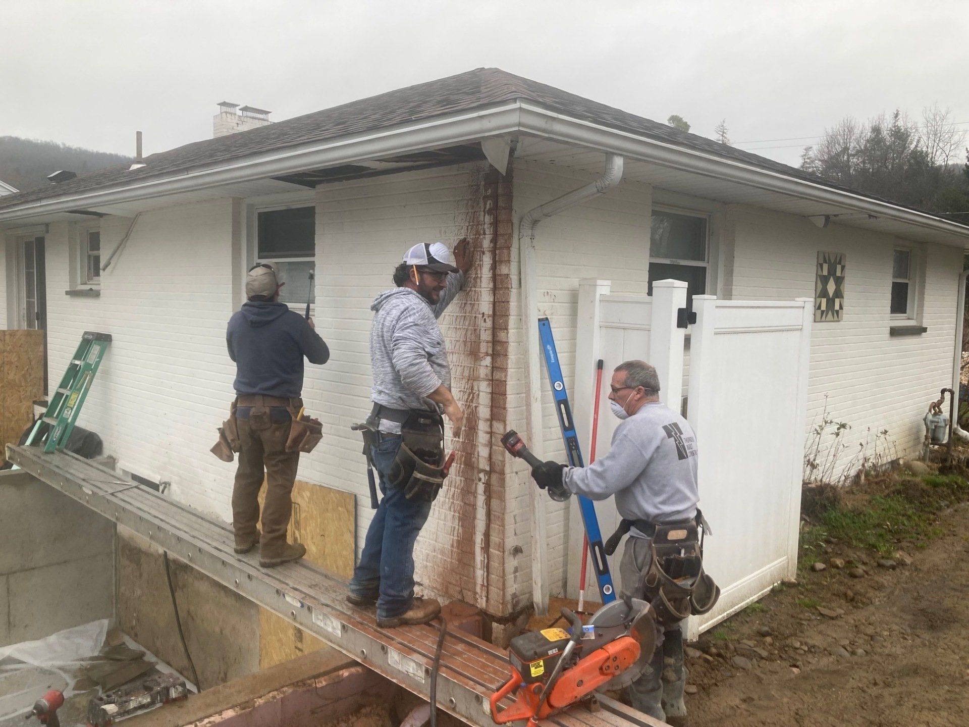 We will be tearing off the deck and rear 12 feet of the home to reestablish a solid foundation. The original foundation was made up of inadequate piers. We will do a new addition, total new roof, new windows and doors, siding and a new composite deck. This will be a total transformation so stay tuned!