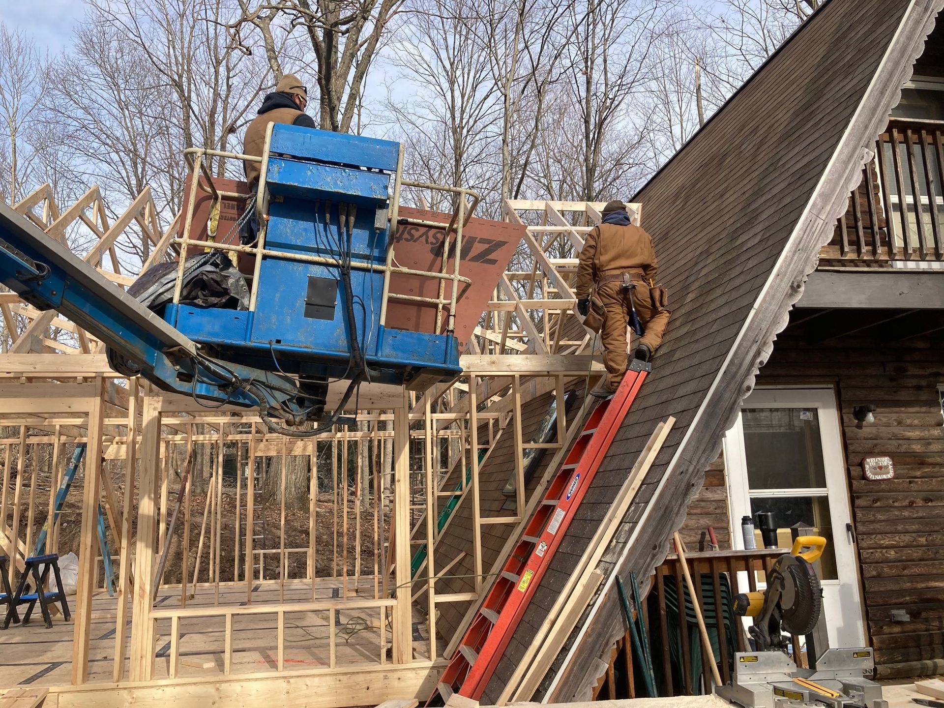 While we wait for doors and windows to arrive for the CJ3 project, we started framing a home on a local lake.