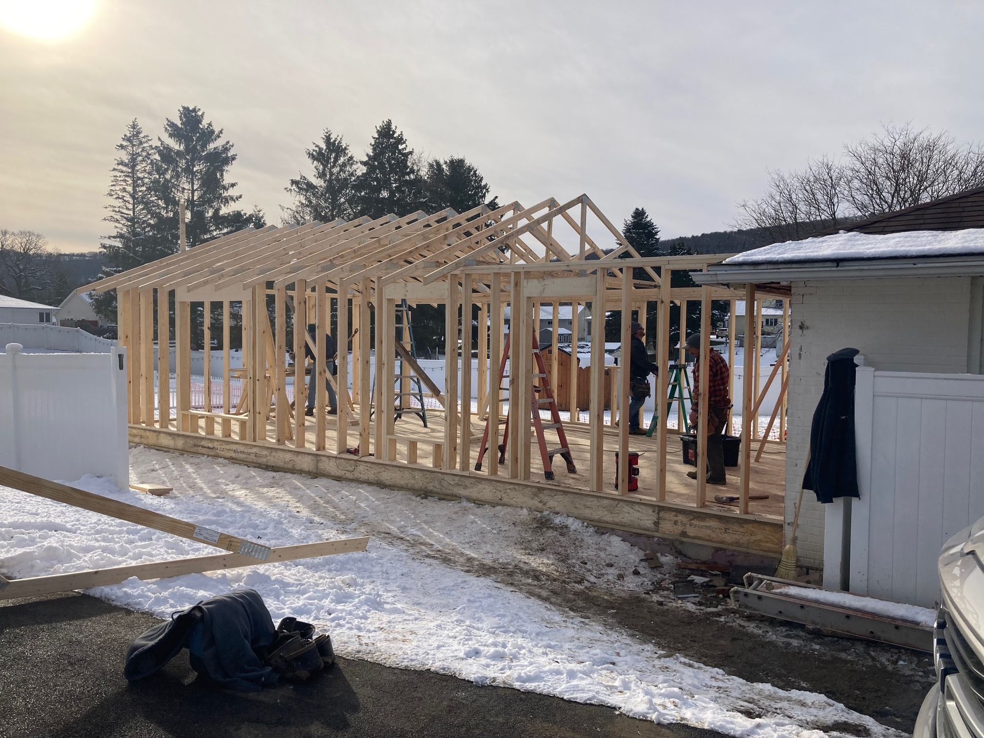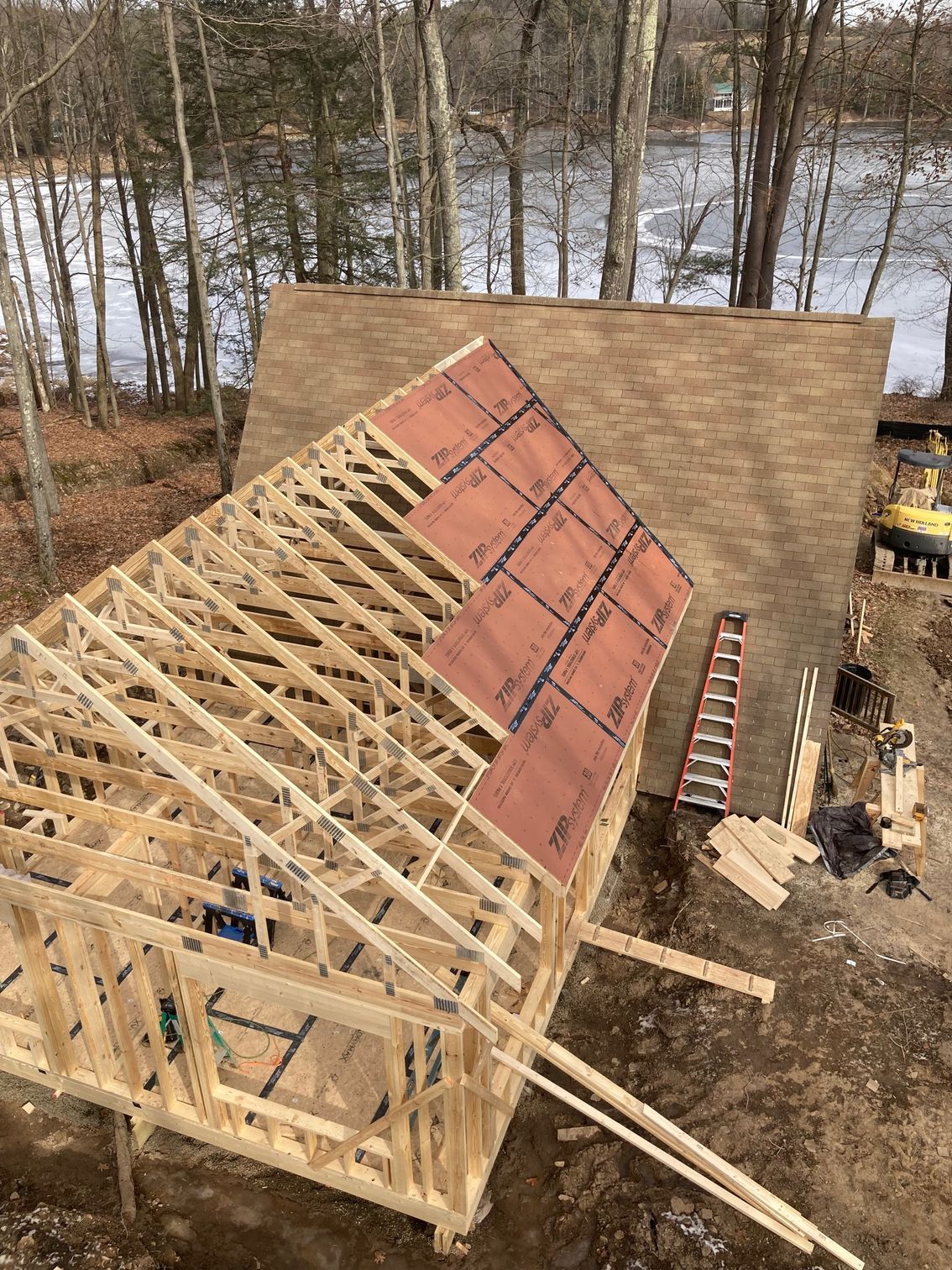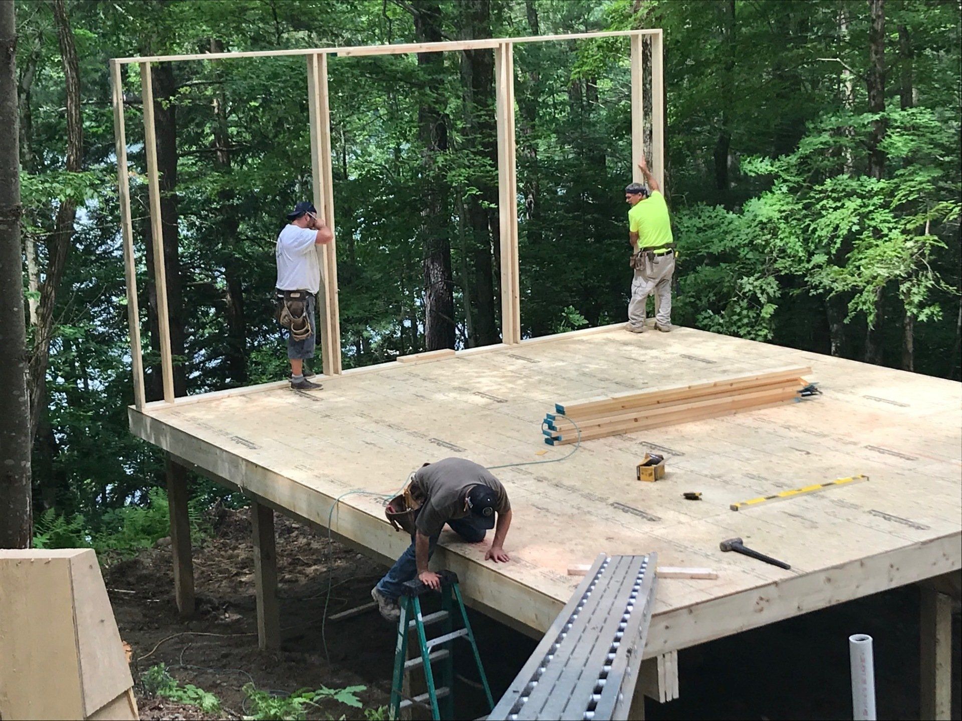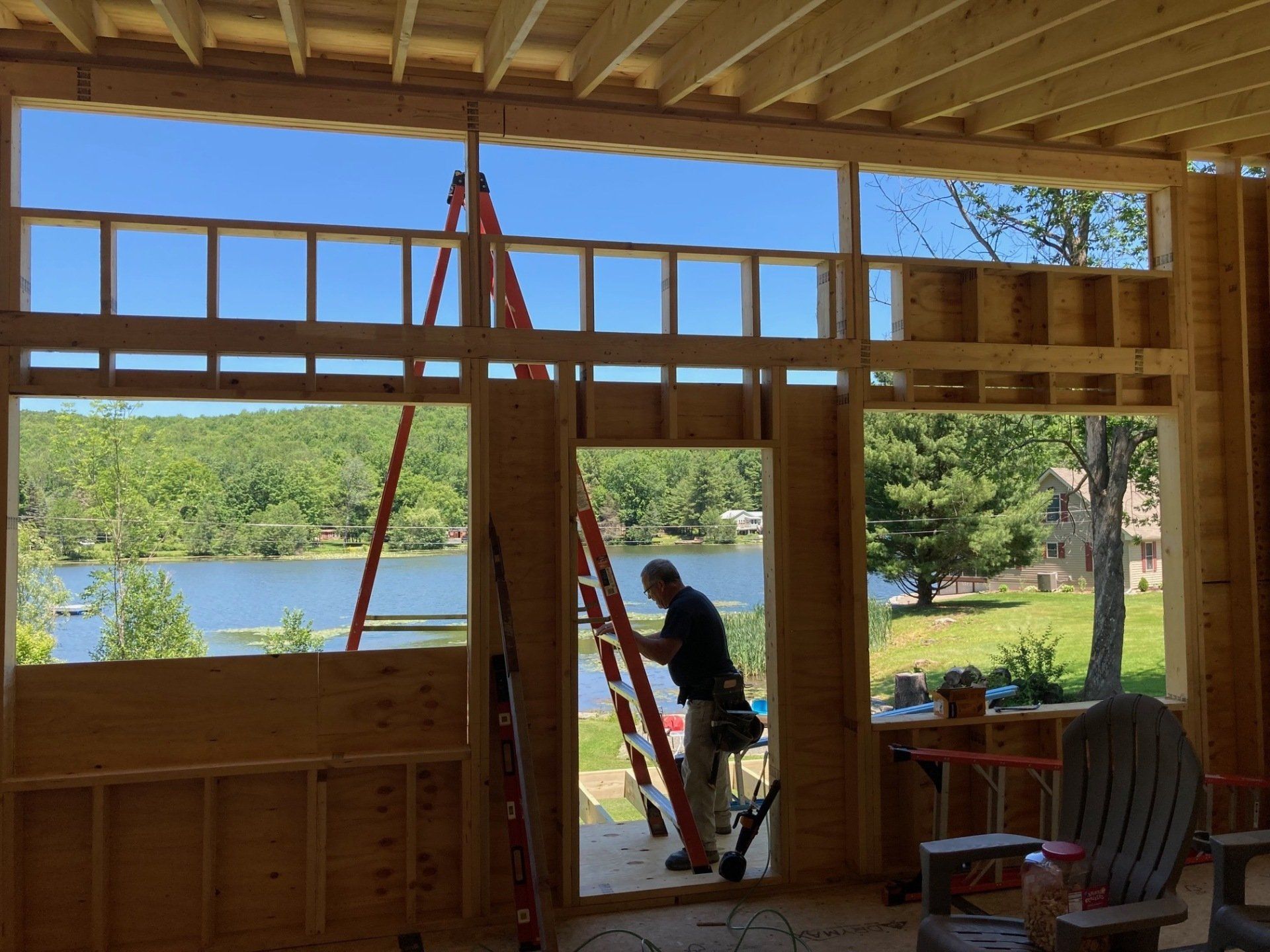 While we wait for doors and windows to arrive for the CJ3 project, we started framing a home on a local lake.