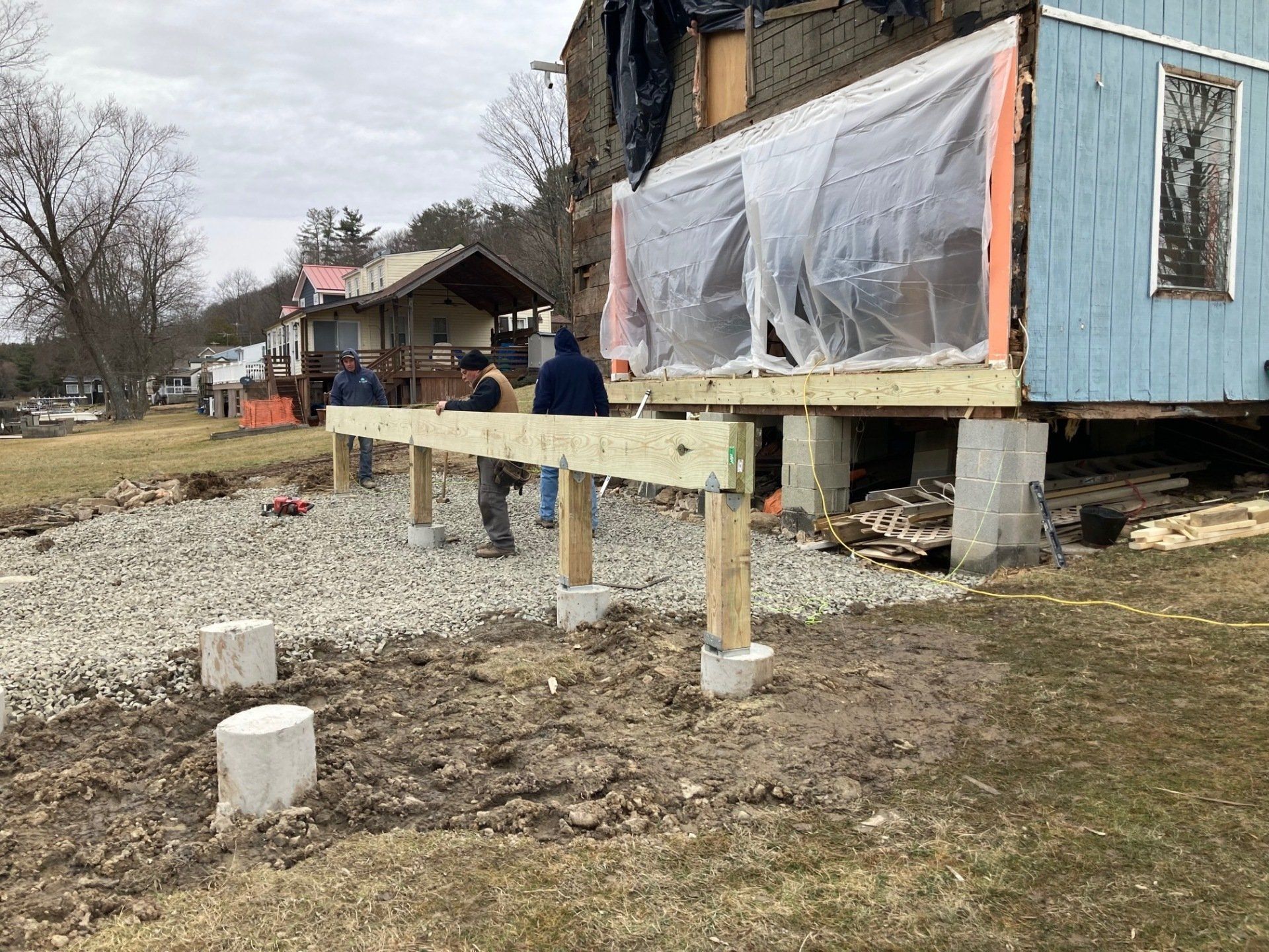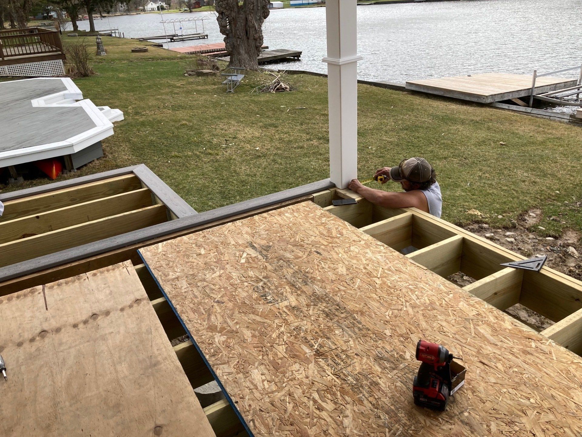While we wait on materials for other projects we started on our next project. Yes it’s another lake house!!