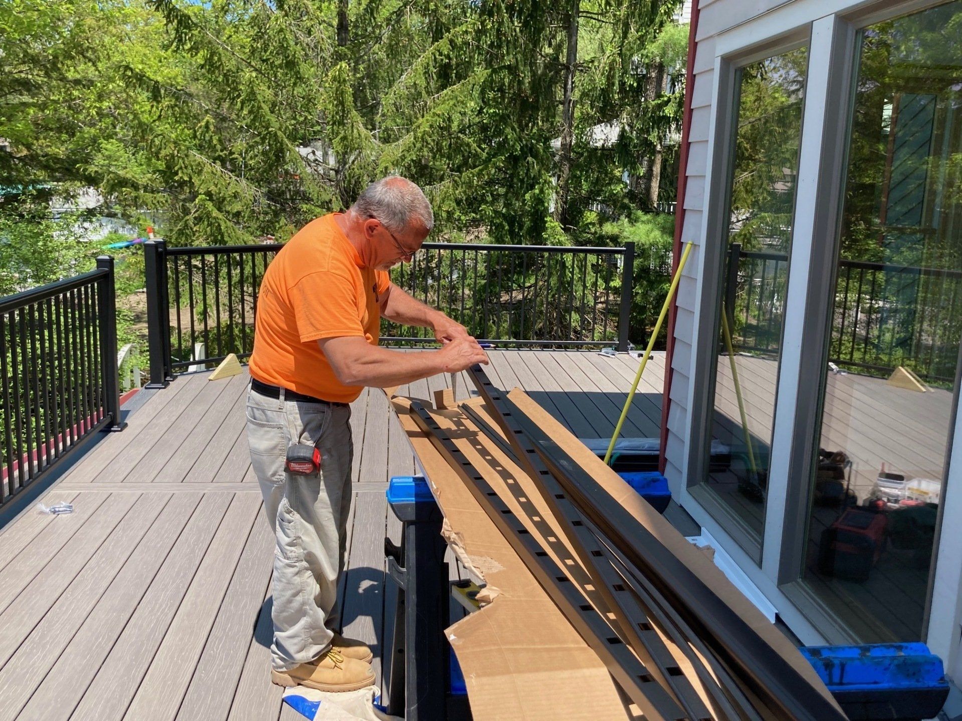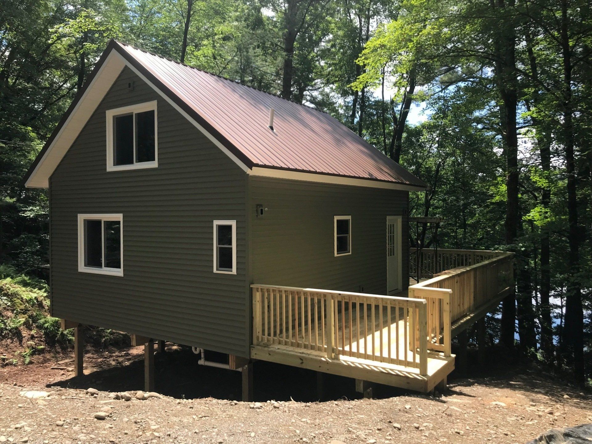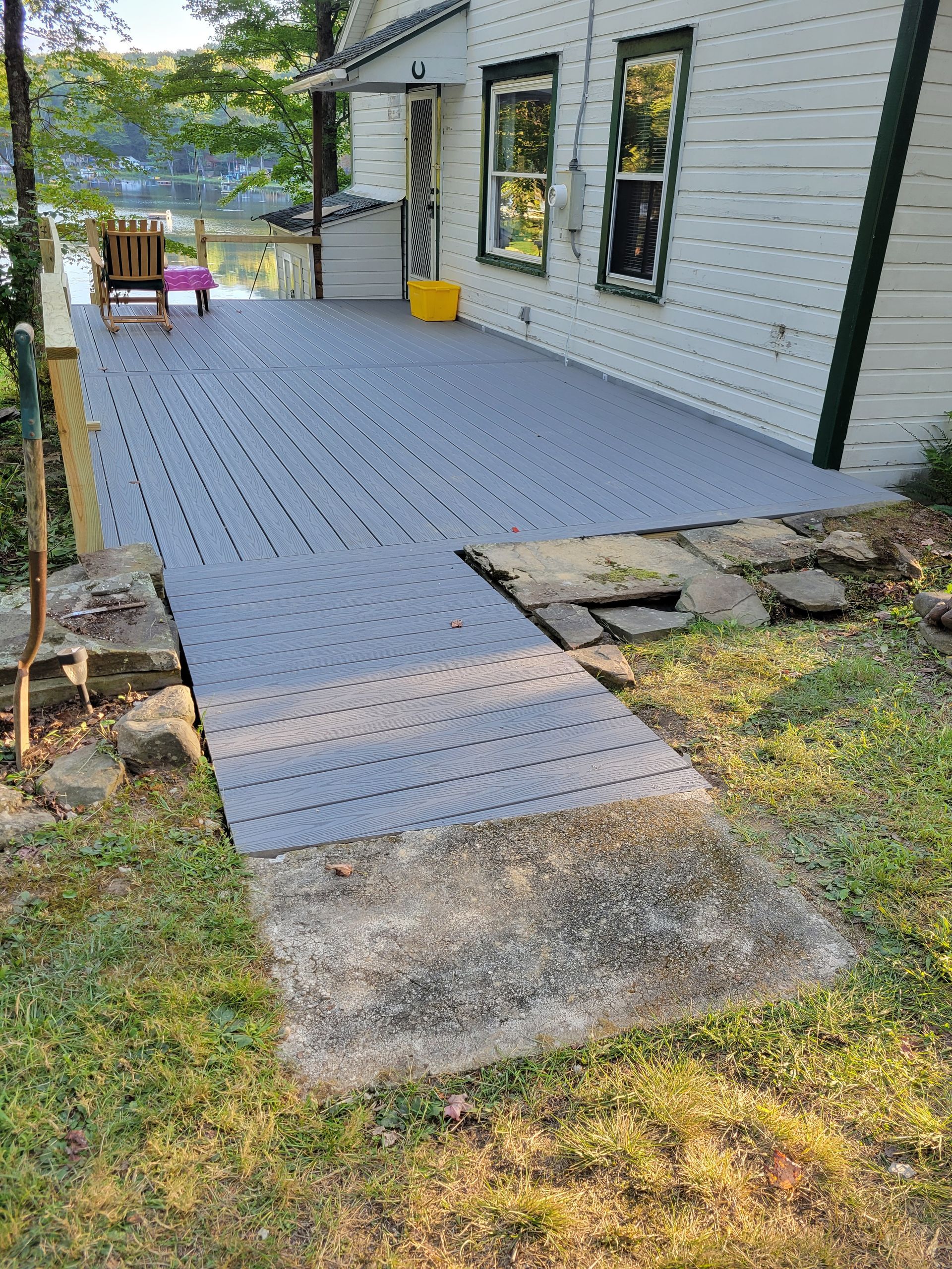 Our client needed a new bathroom at her cottage and she also wanted us to build a new, one-level deck with a ramp so her friend- who is confined to a wheelchair- could come visit.