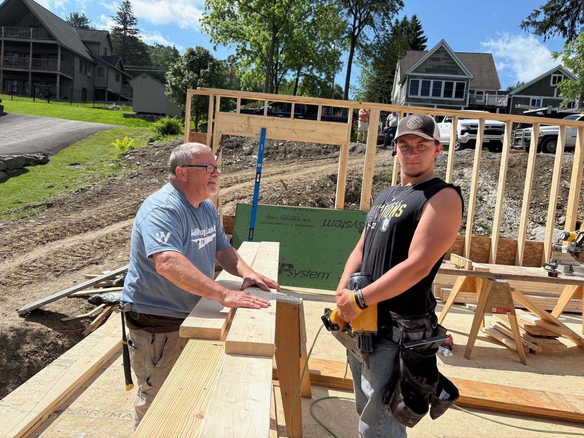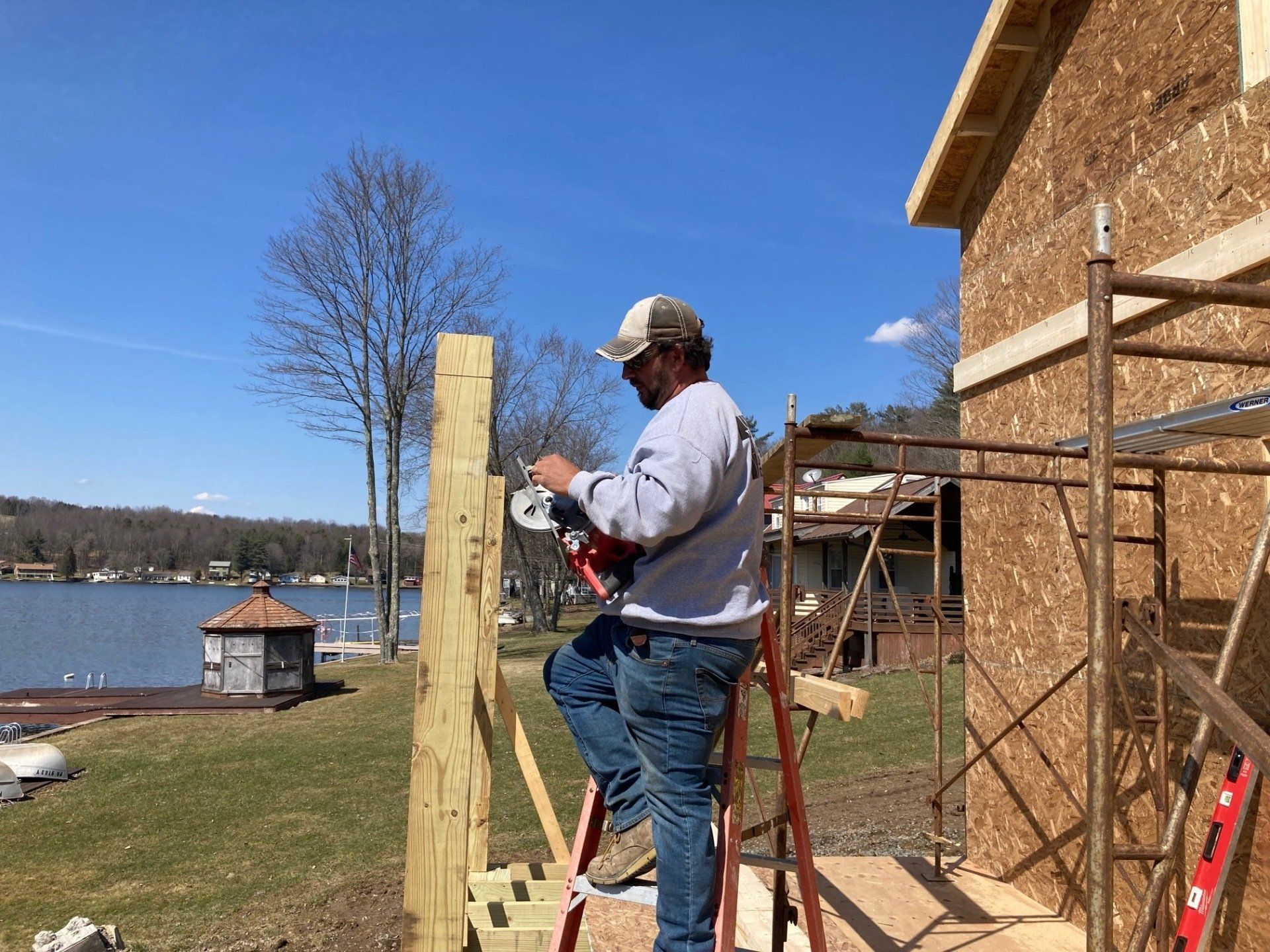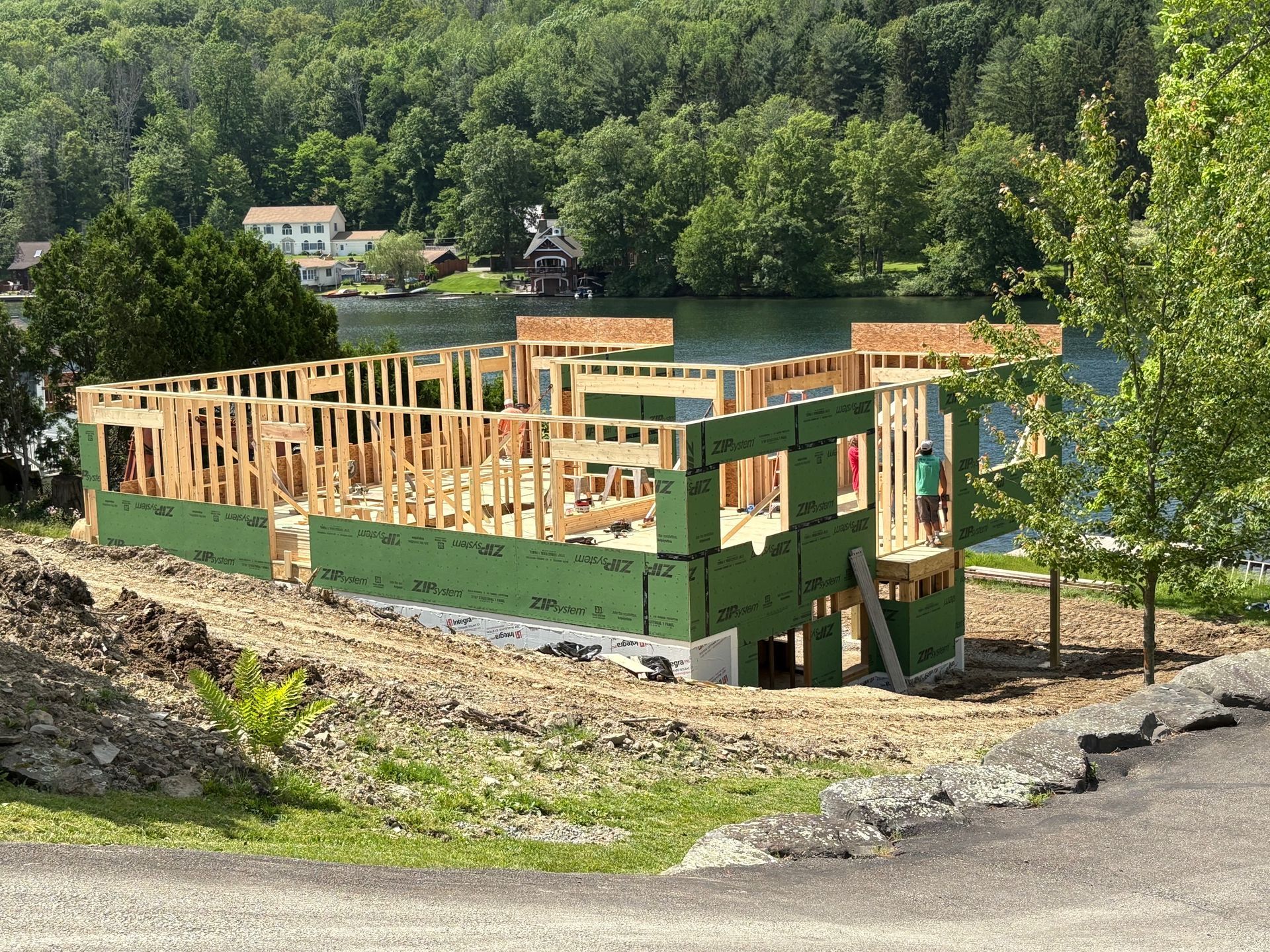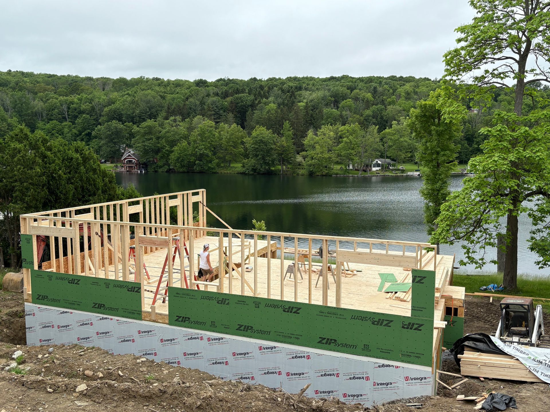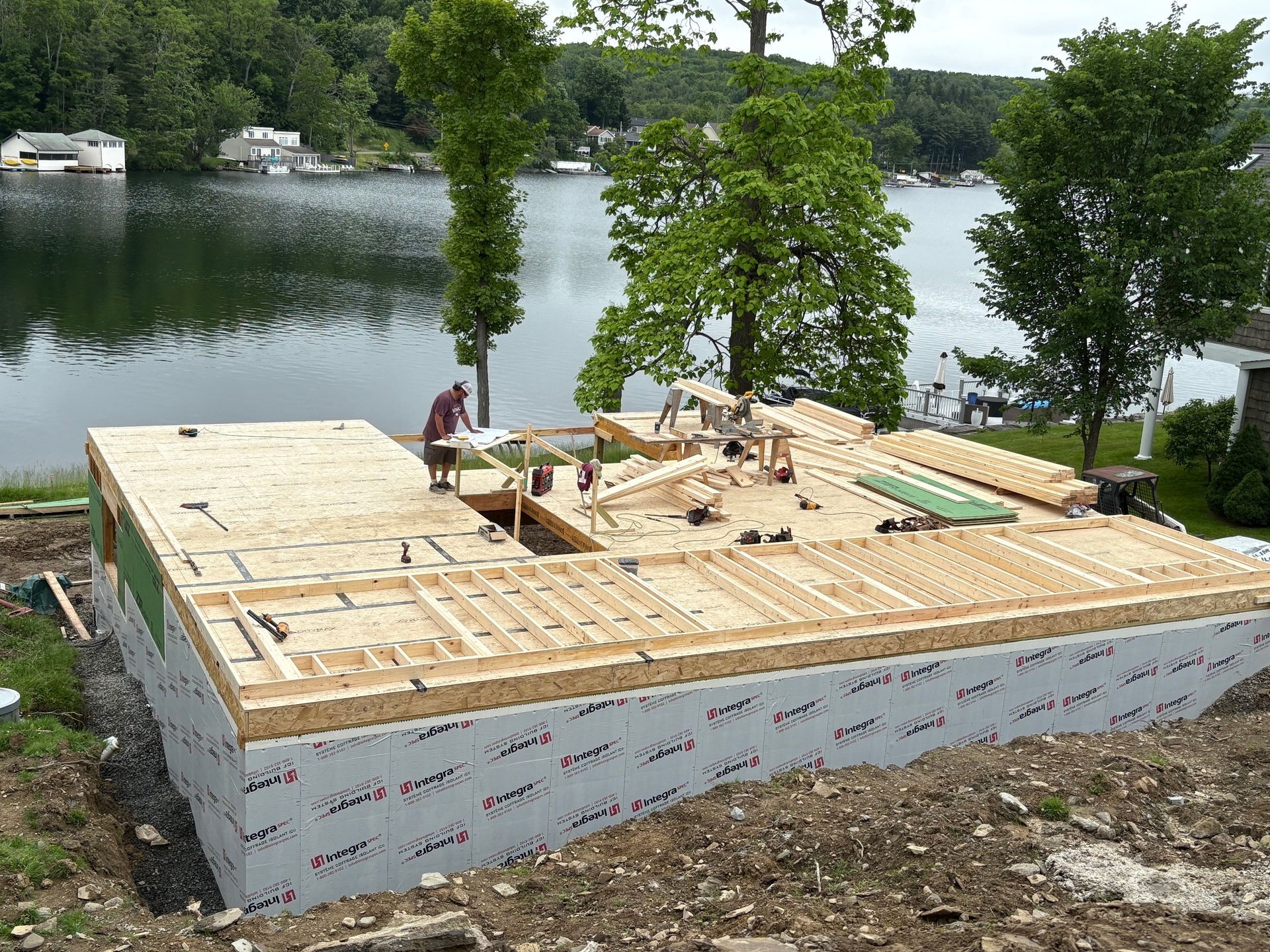 While we wait for doors and windows to arrive for the CJ3 project, we started framing a home on a local lake.