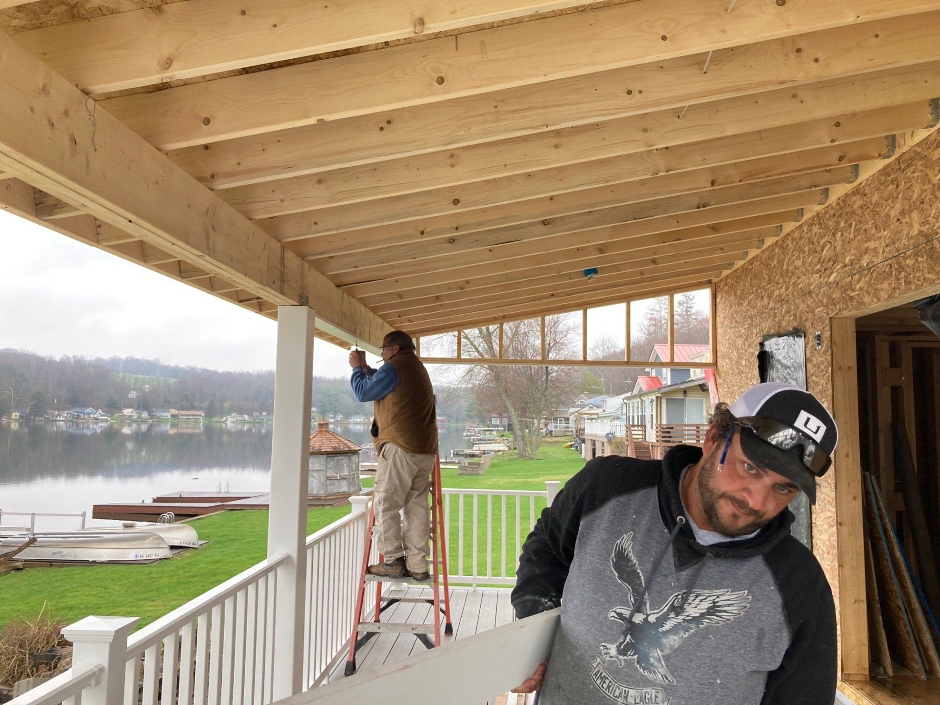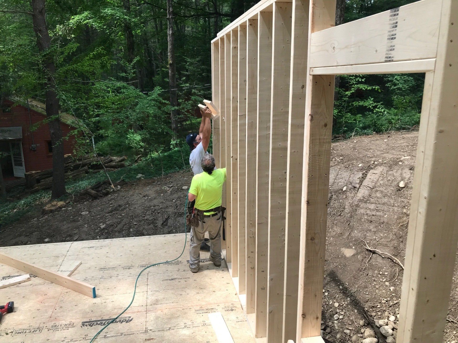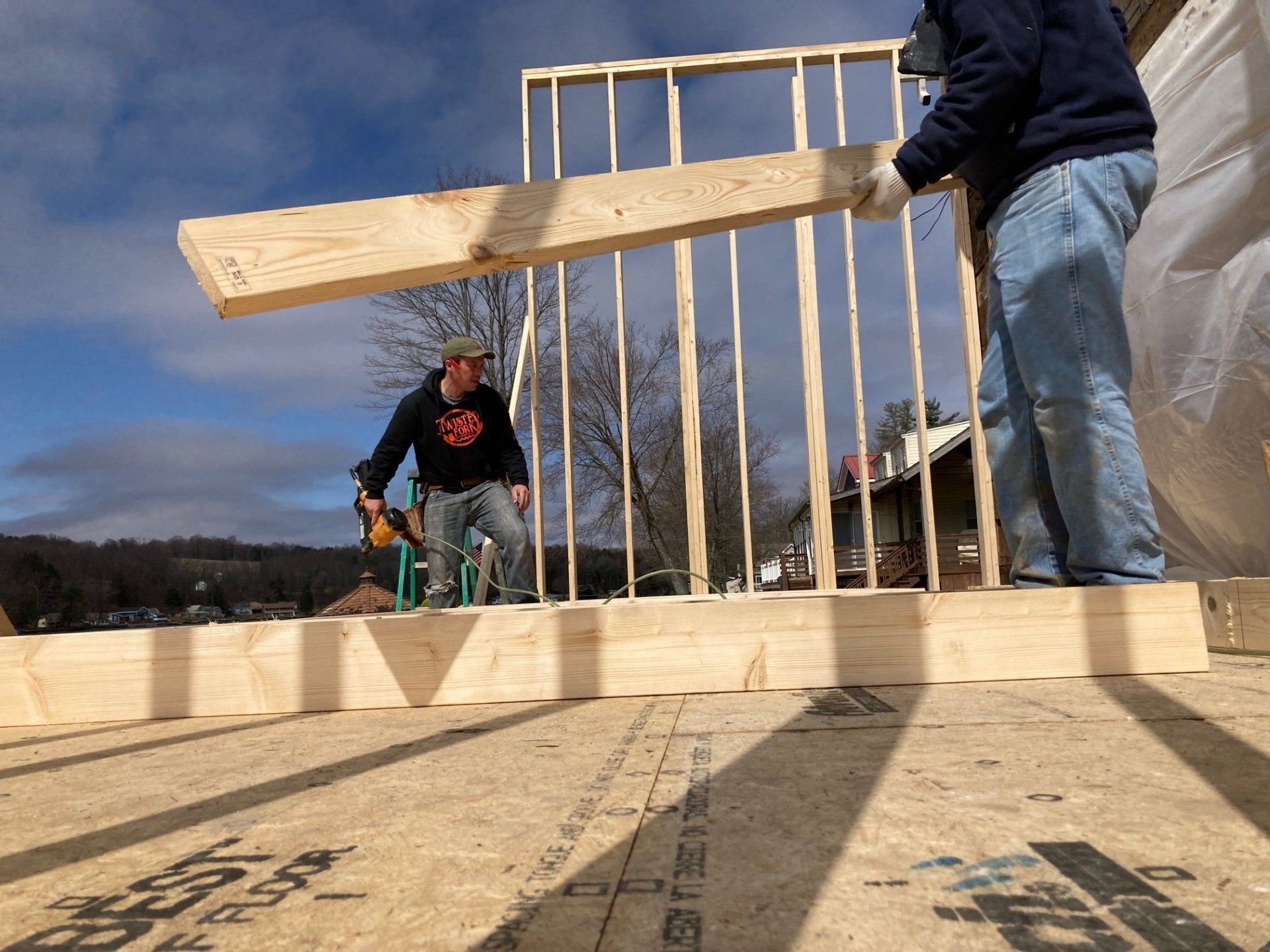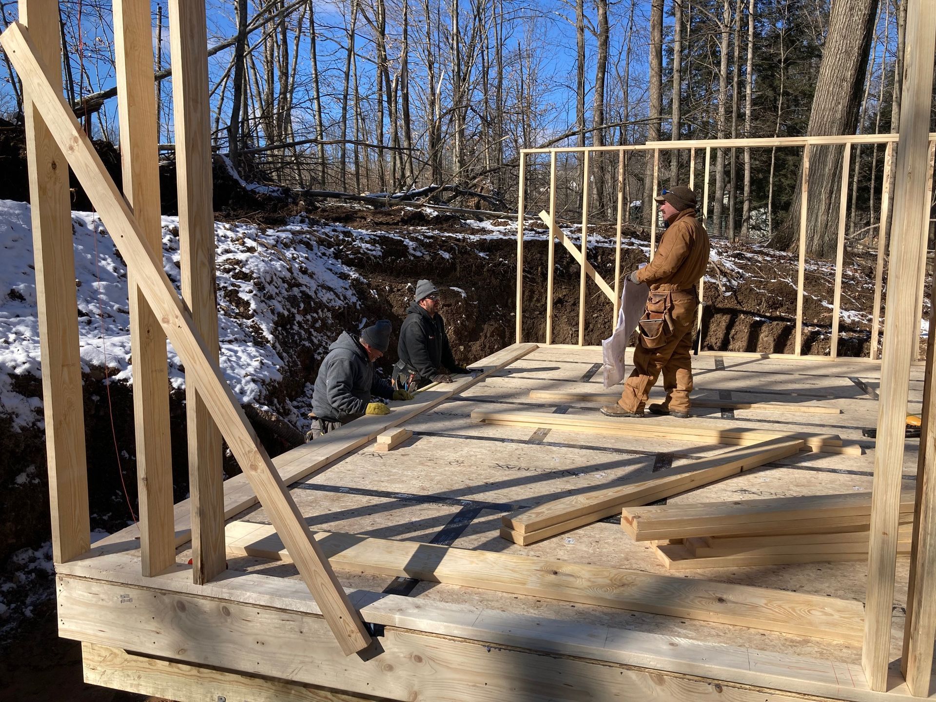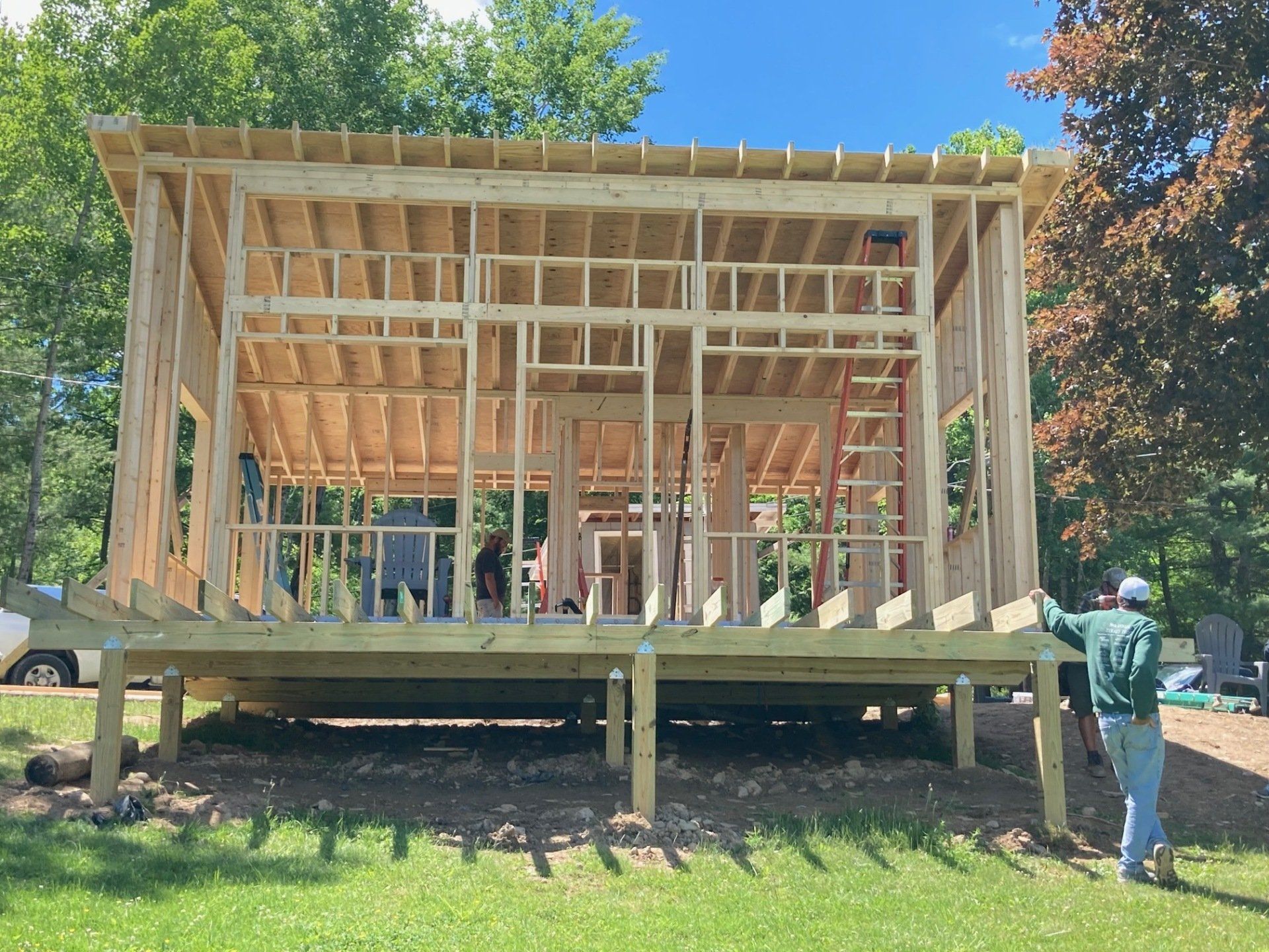While we wait for doors and windows to arrive for the CJ3 project, we started framing a home on a local lake.