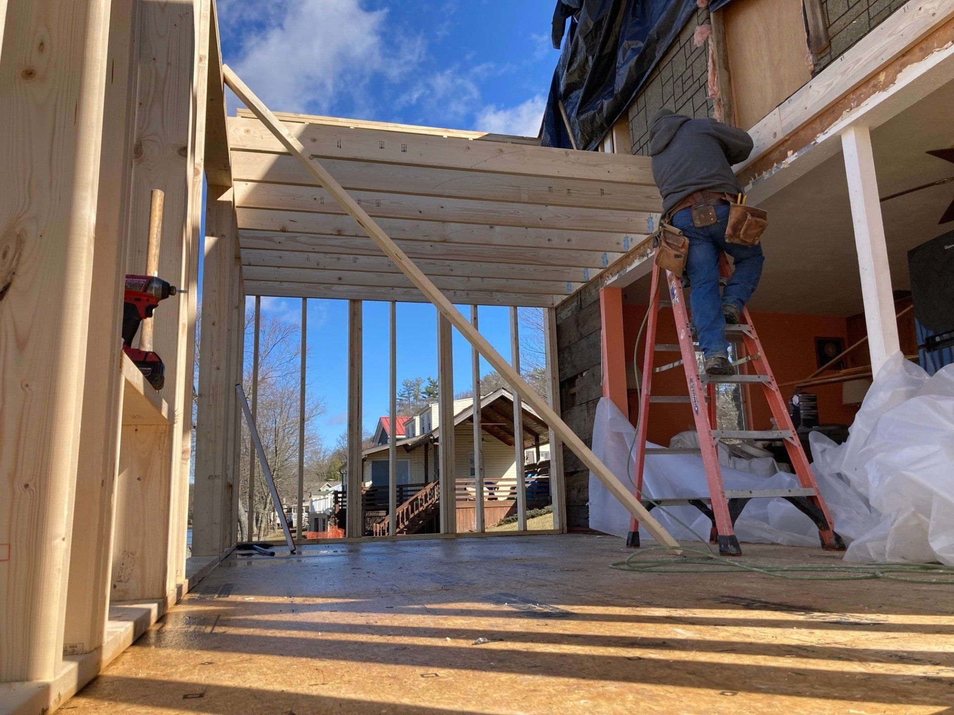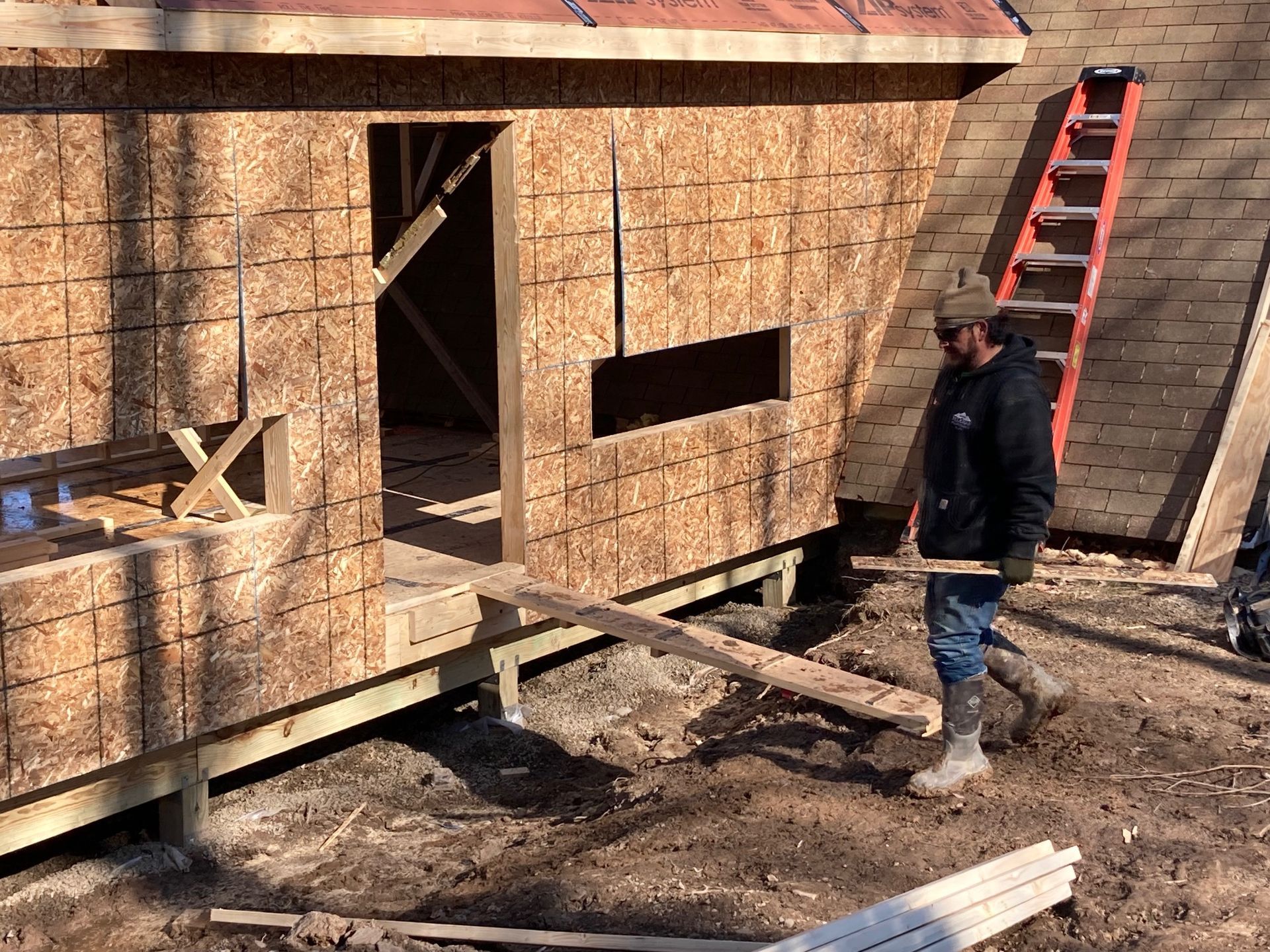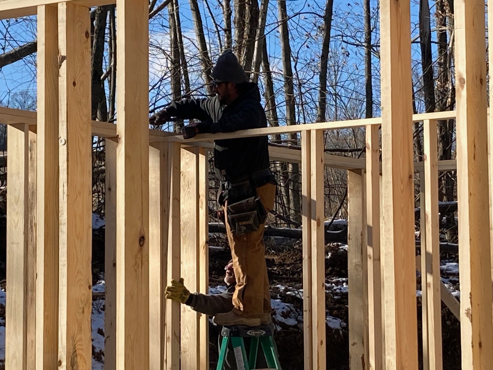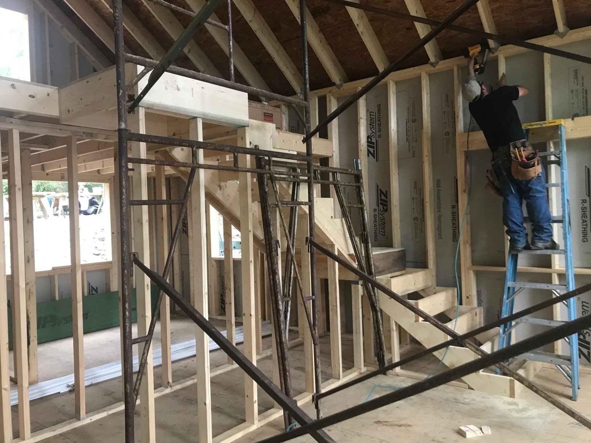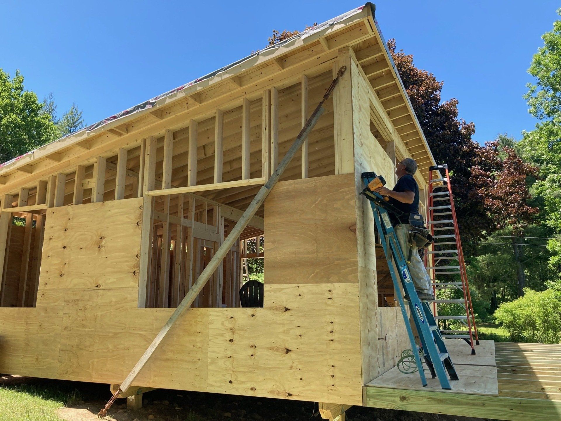 While we wait for doors and windows to arrive for the CJ3 project, we started framing a home on a local lake.