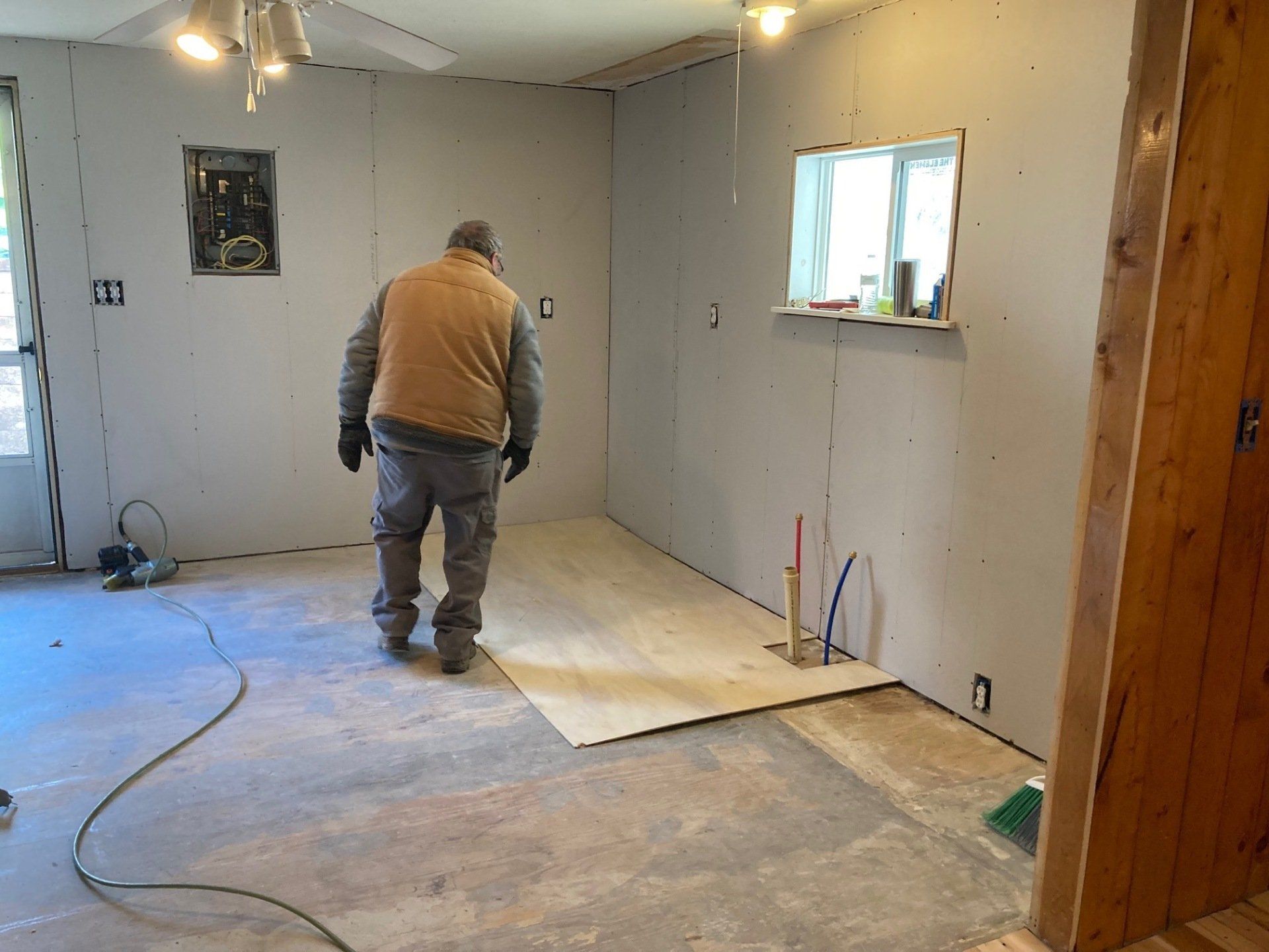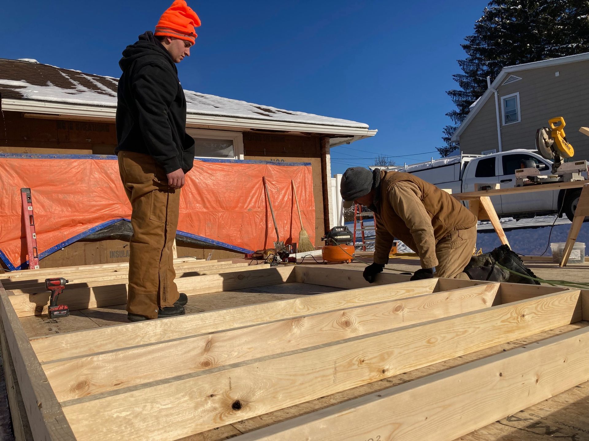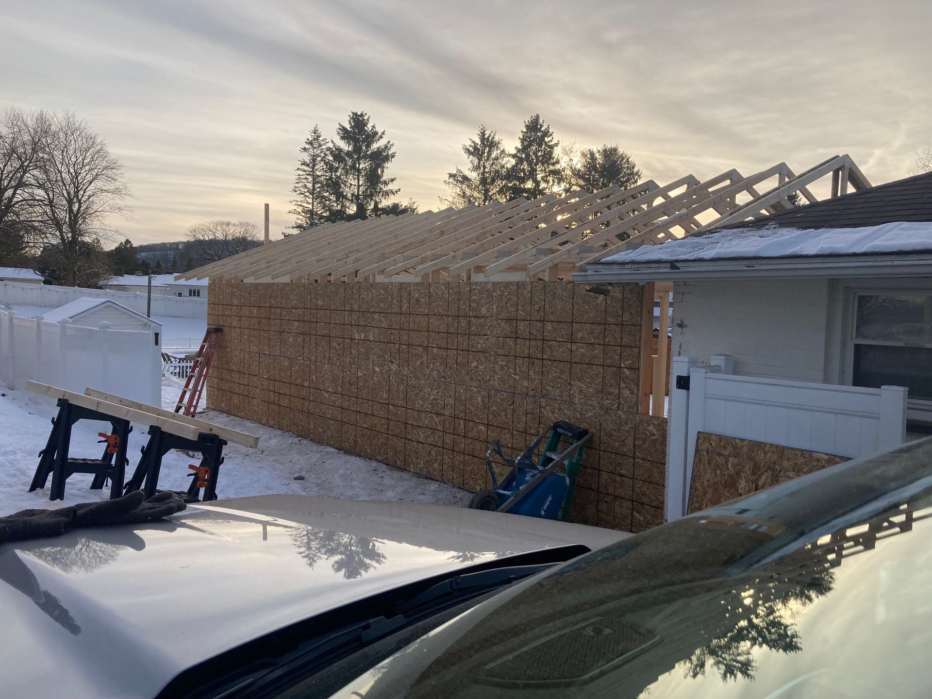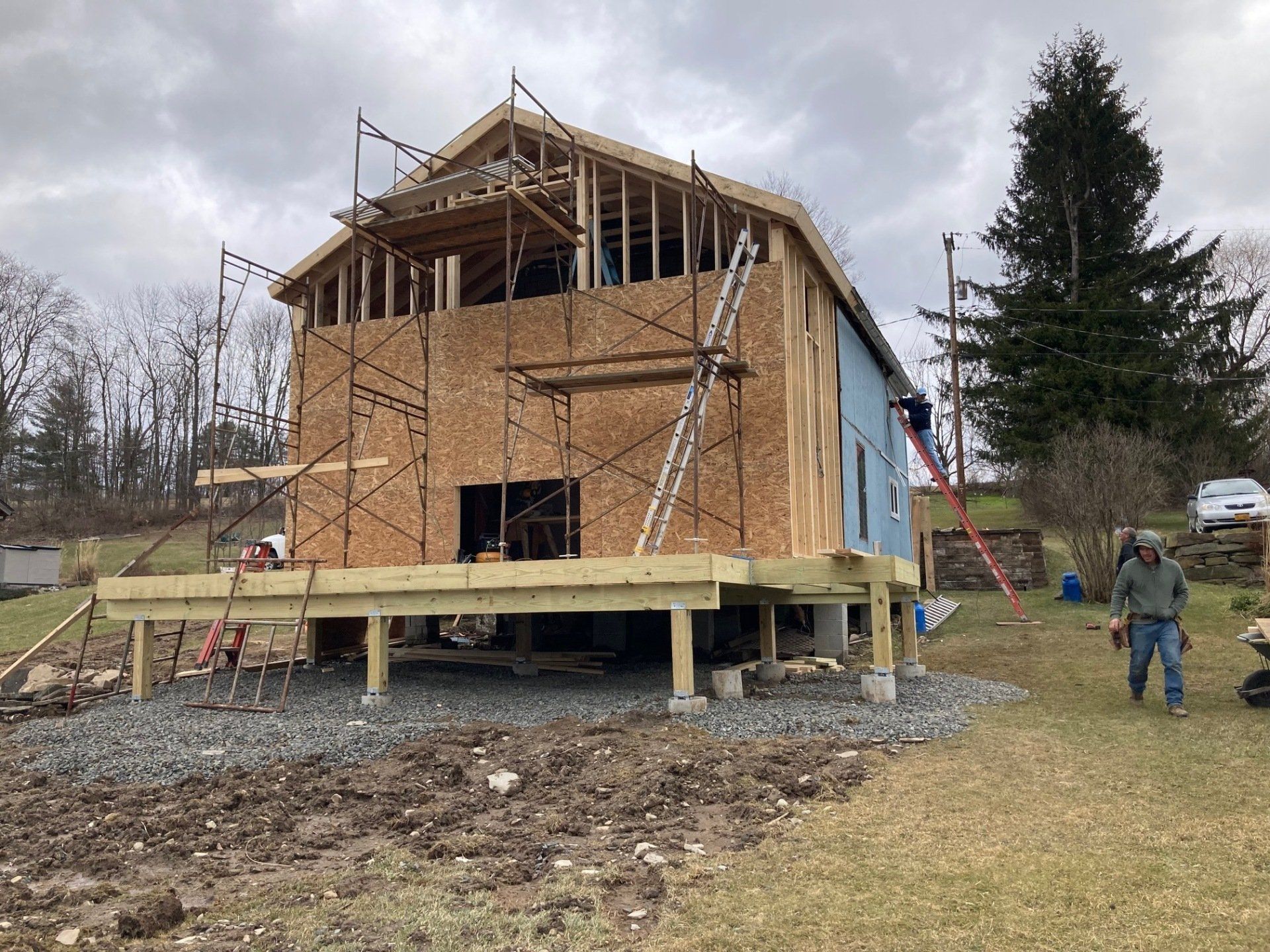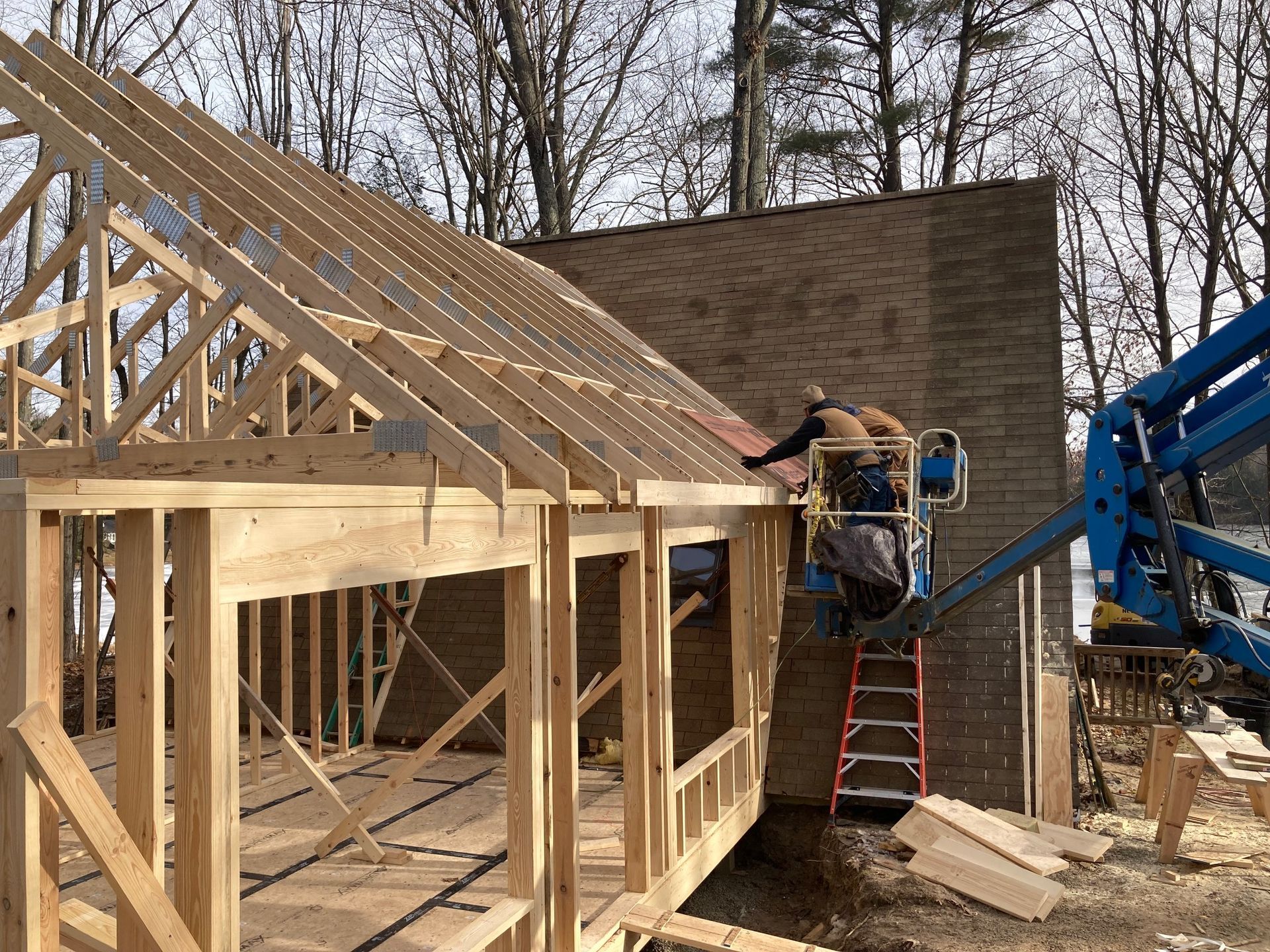 While we wait for doors and windows to arrive for the CJ3 project, we started framing a home on a local lake.