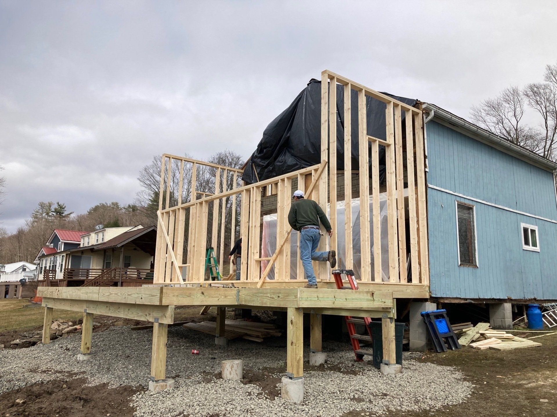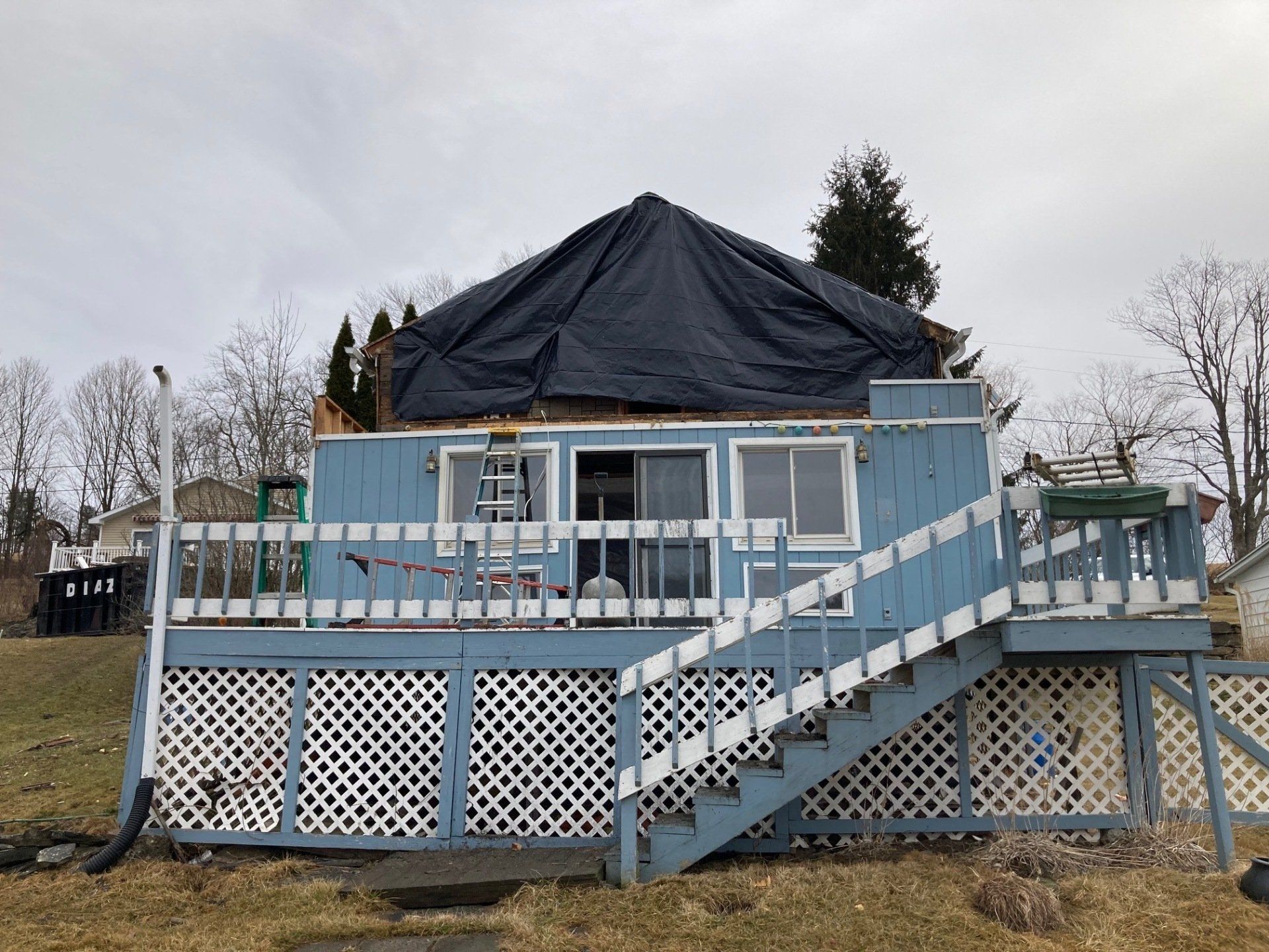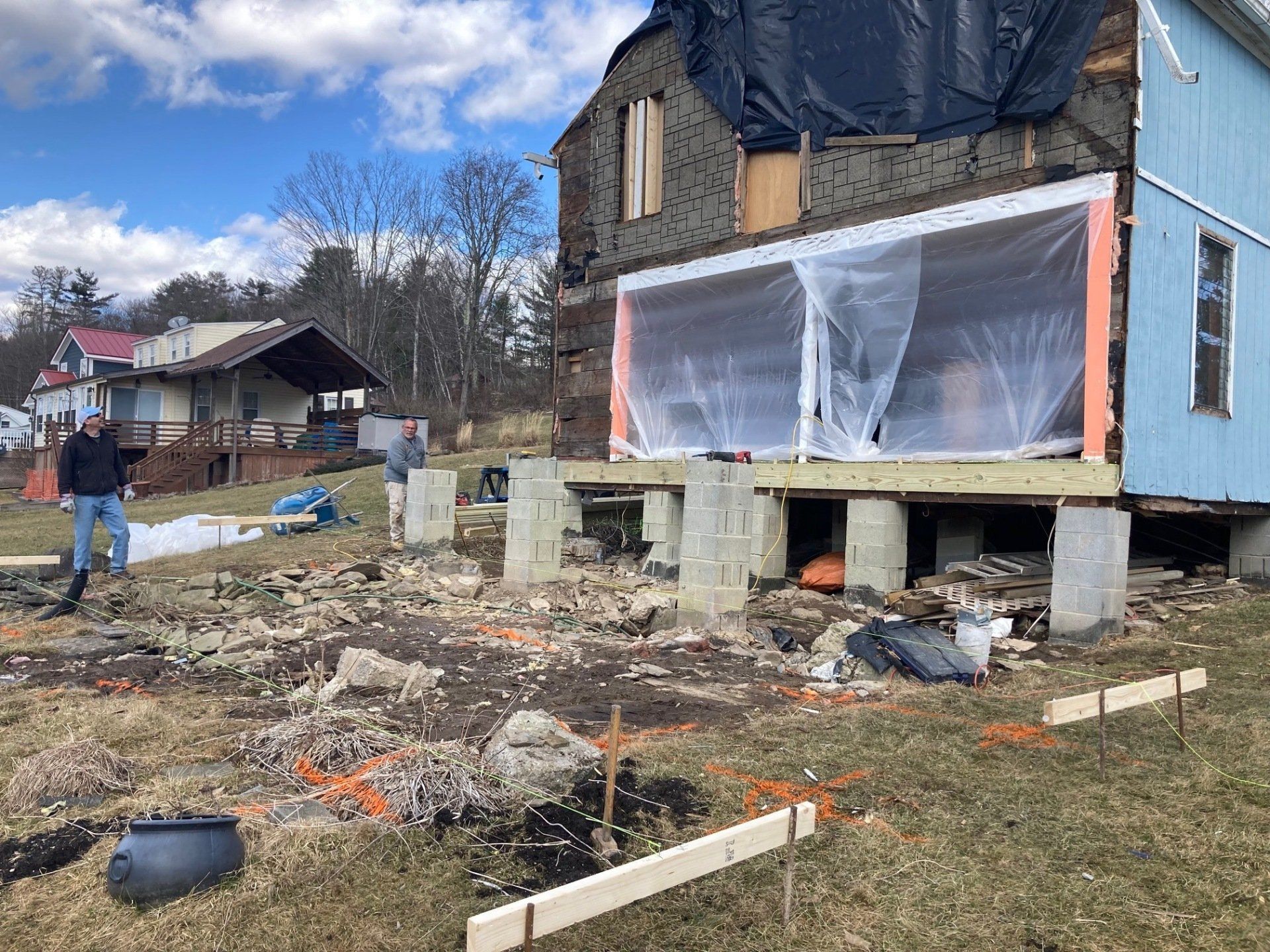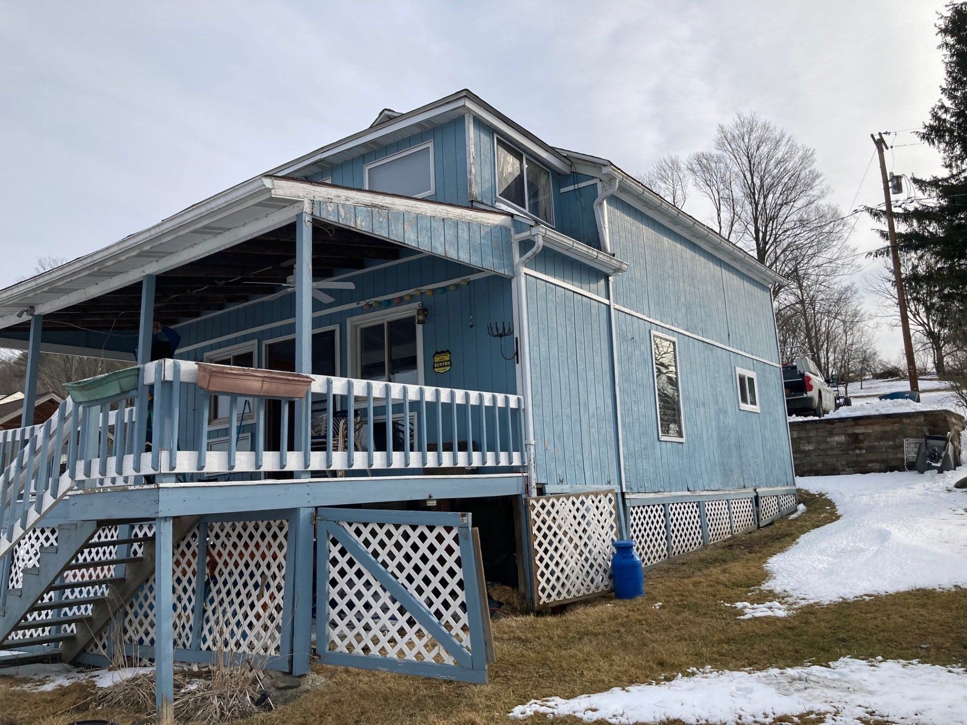 We will be tearing off the deck and rear 12 feet of the home to reestablish a solid foundation. The original foundation was made up of inadequate piers. We will do a new addition, total new roof, new windows and doors, siding and a new composite deck. This will be a total transformation so stay tuned!