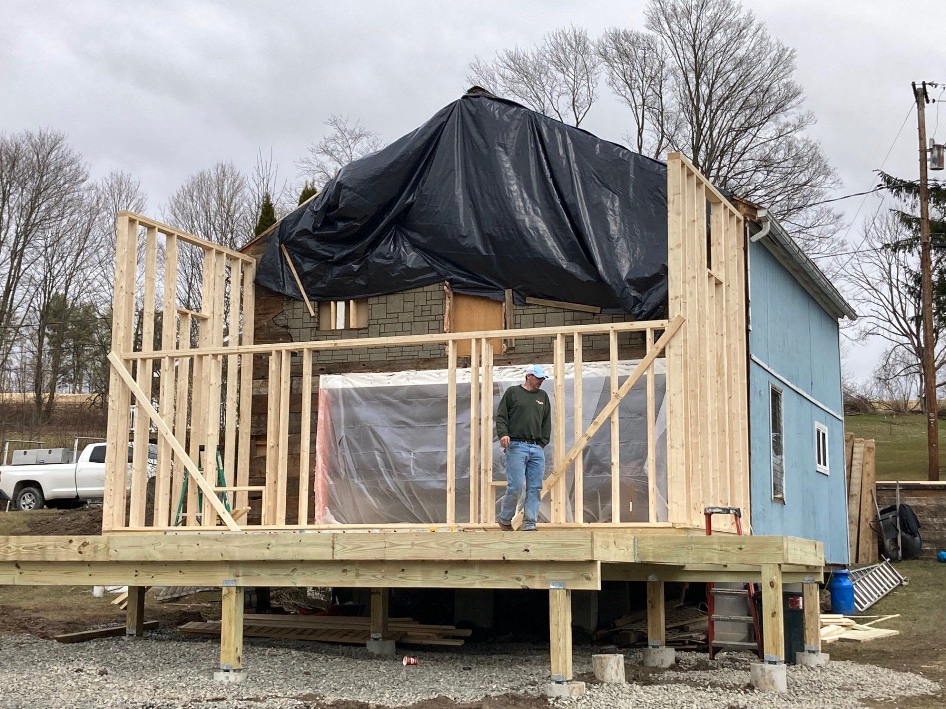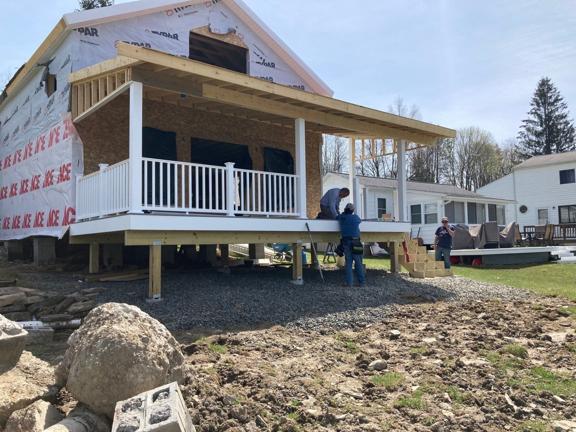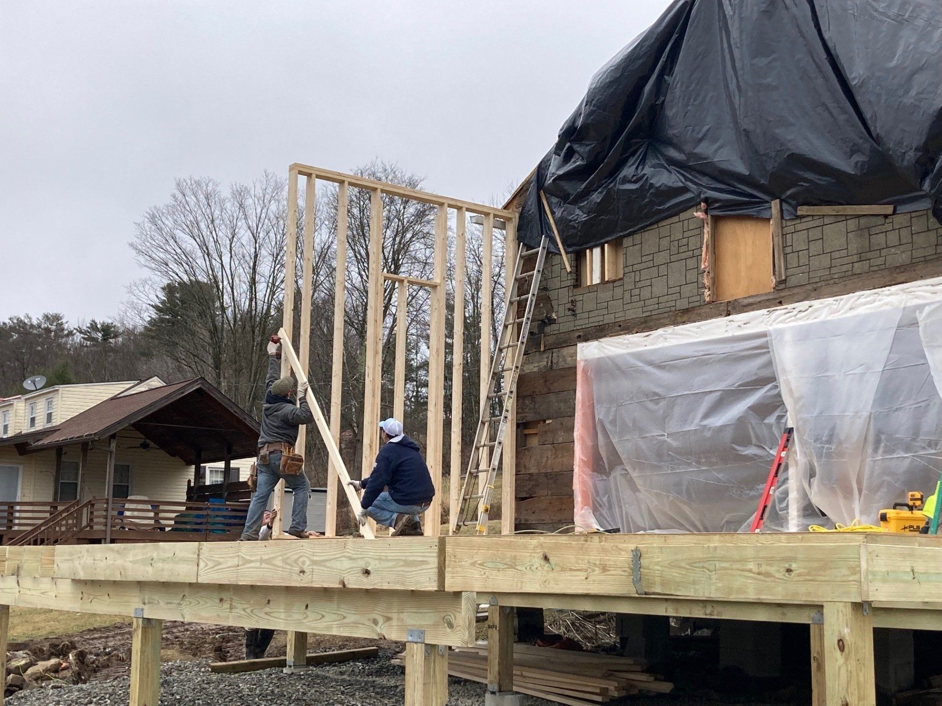 We will be tearing off the deck and rear 12 feet of the home to reestablish a solid foundation. The original foundation was made up of inadequate piers. We will do a new addition, total new roof, new windows and doors, siding and a new composite deck. This will be a total transformation so stay tuned!