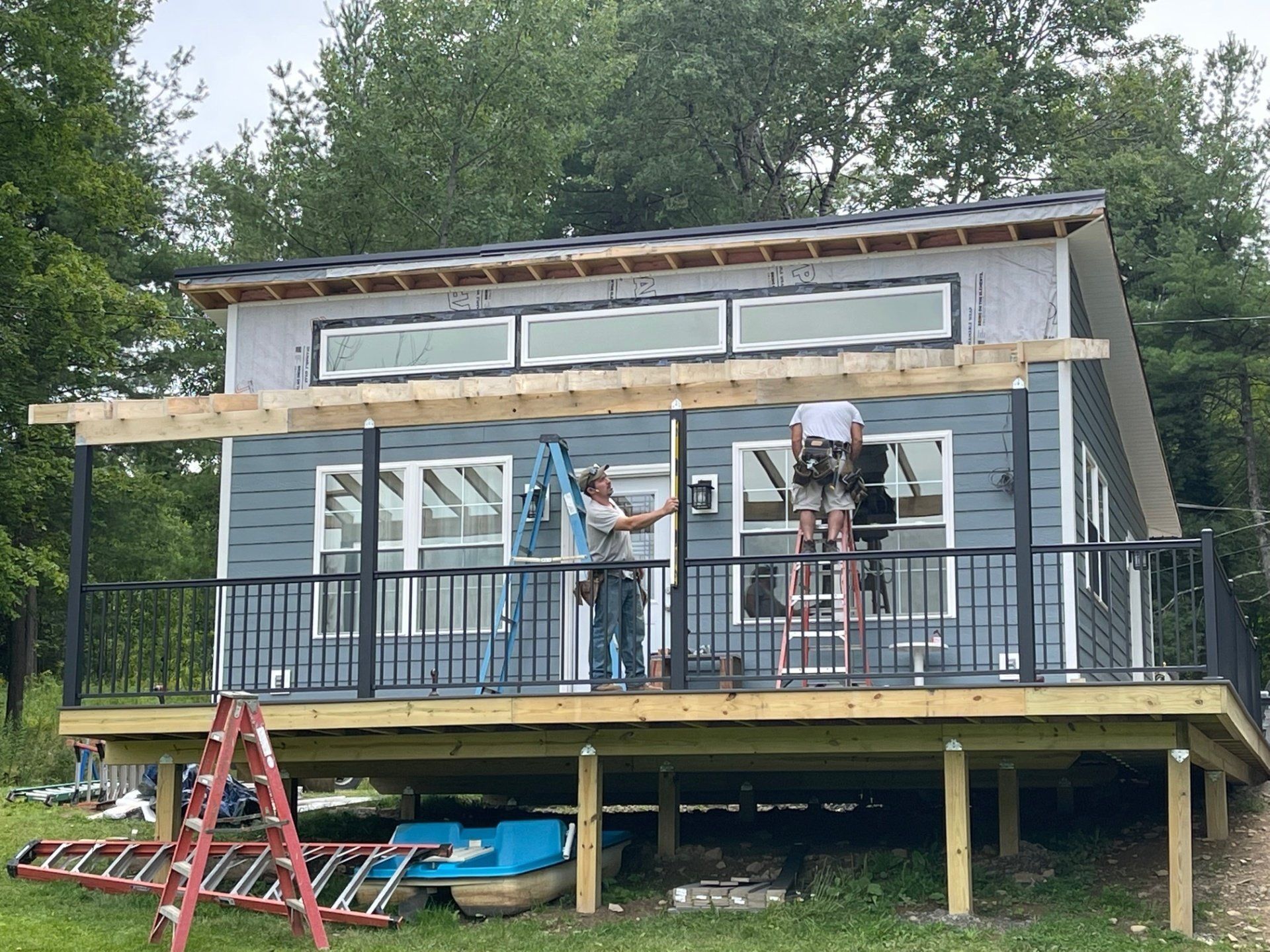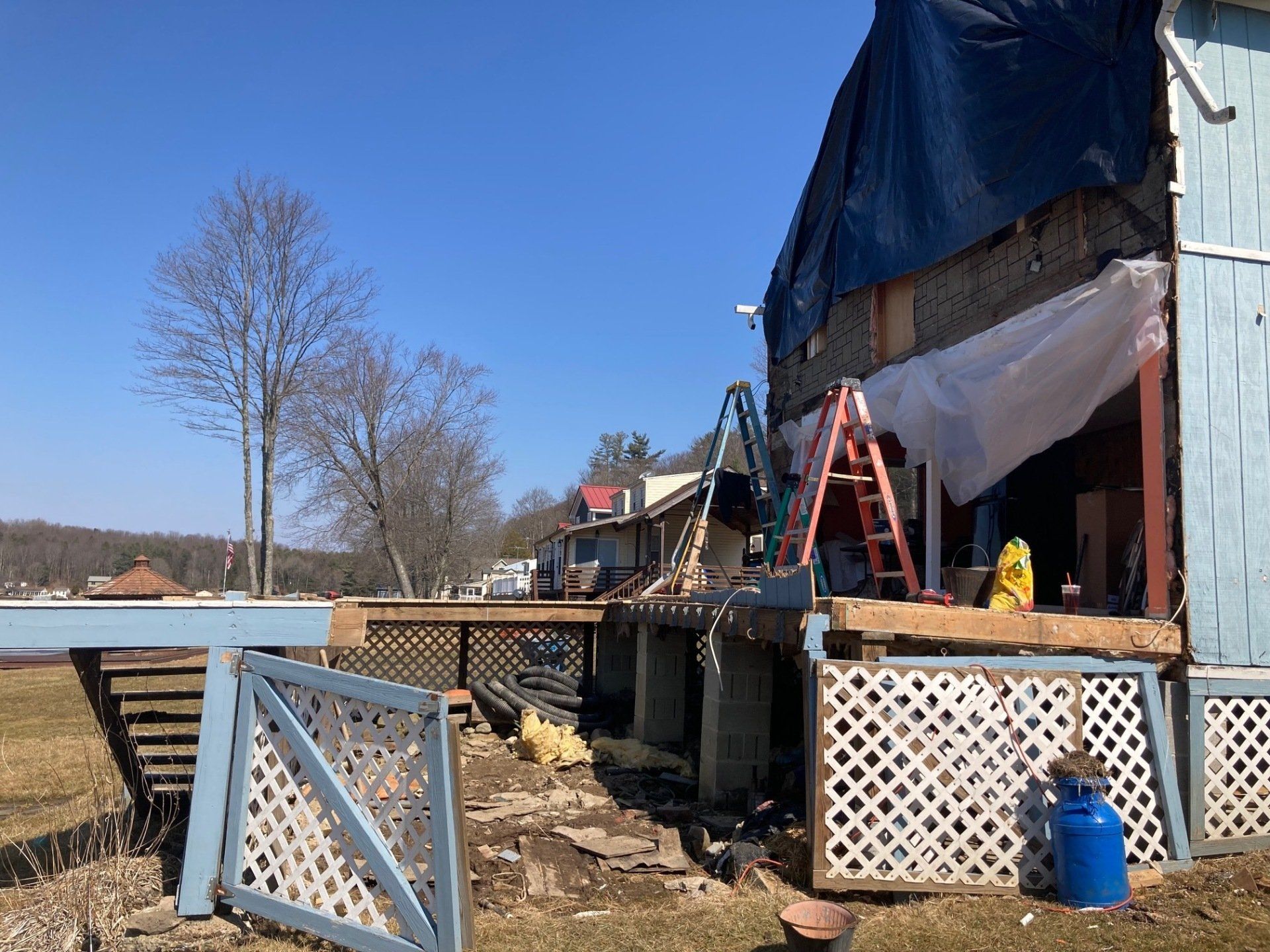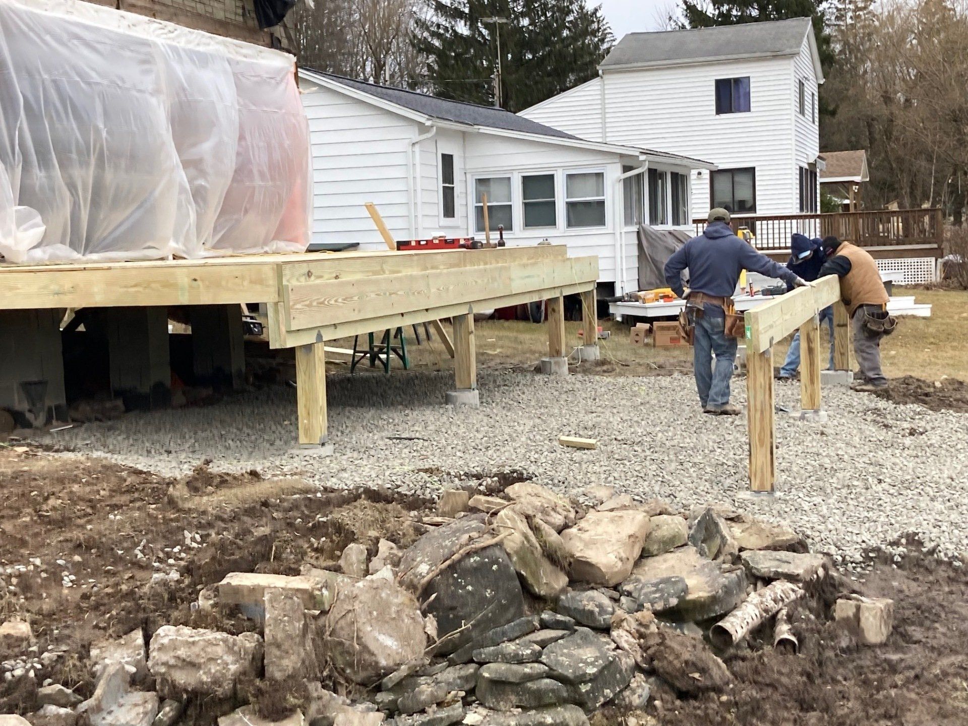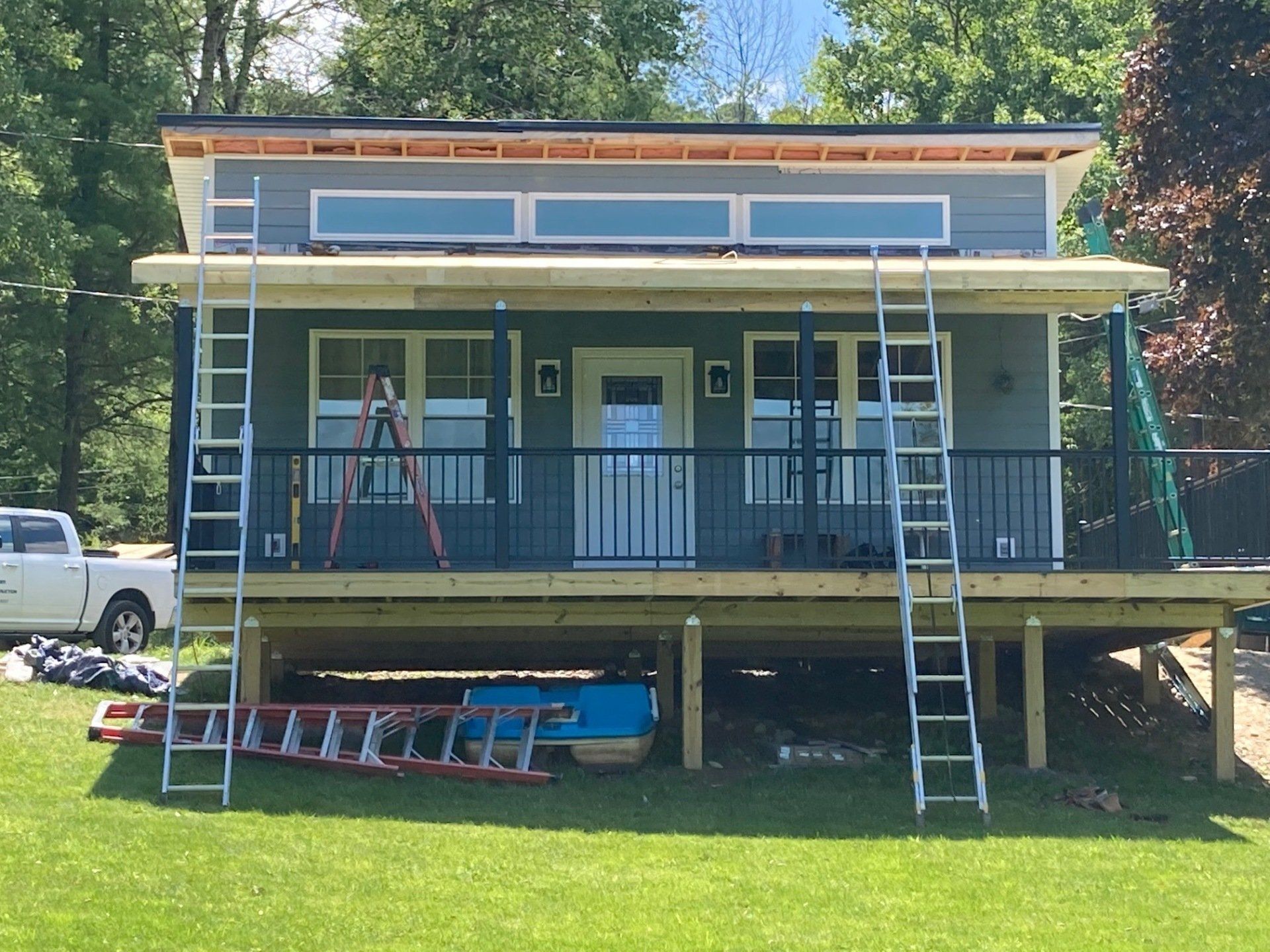 We will be tearing off the deck and rear 12 feet of the home to reestablish a solid foundation. The original foundation was made up of inadequate piers. We will do a new addition, total new roof, new windows and doors, siding and a new composite deck. This will be a total transformation so stay tuned!