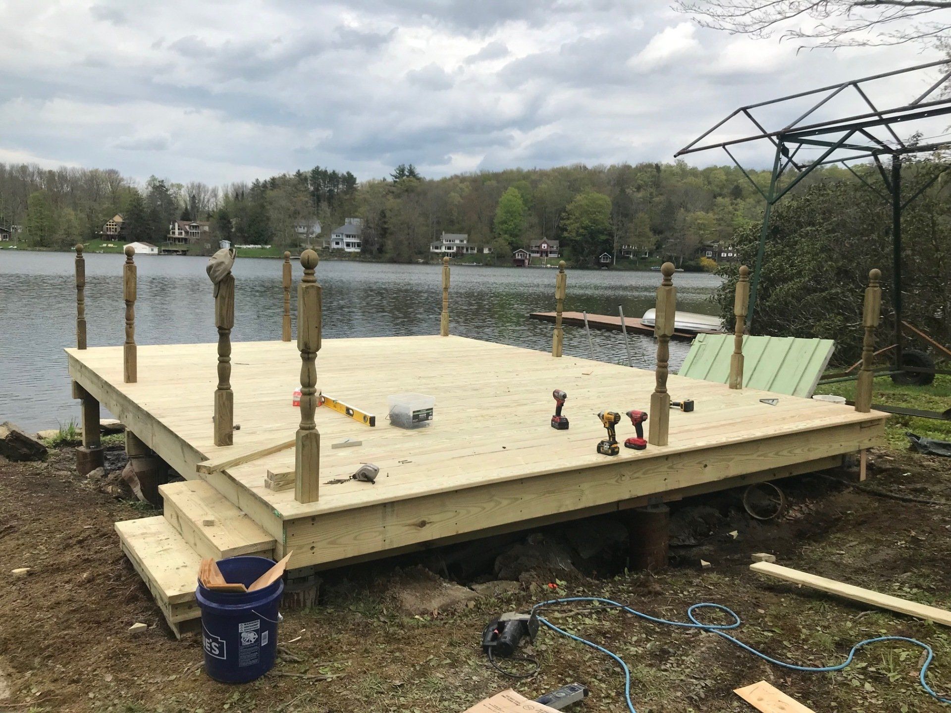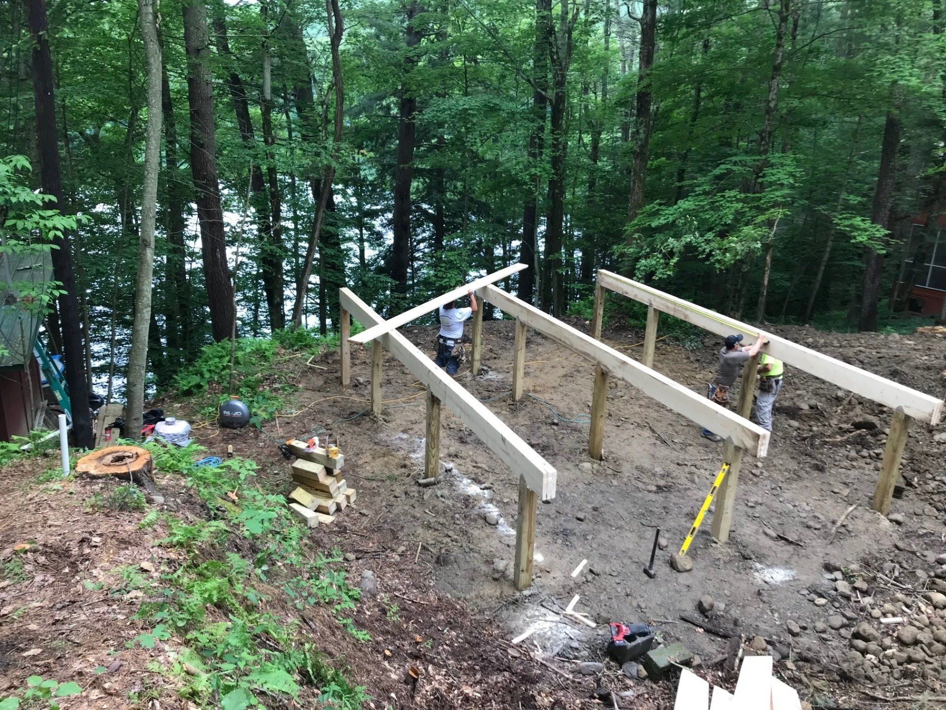 While we wait on materials for other projects we started on our next project. Yes it’s another lake house!!